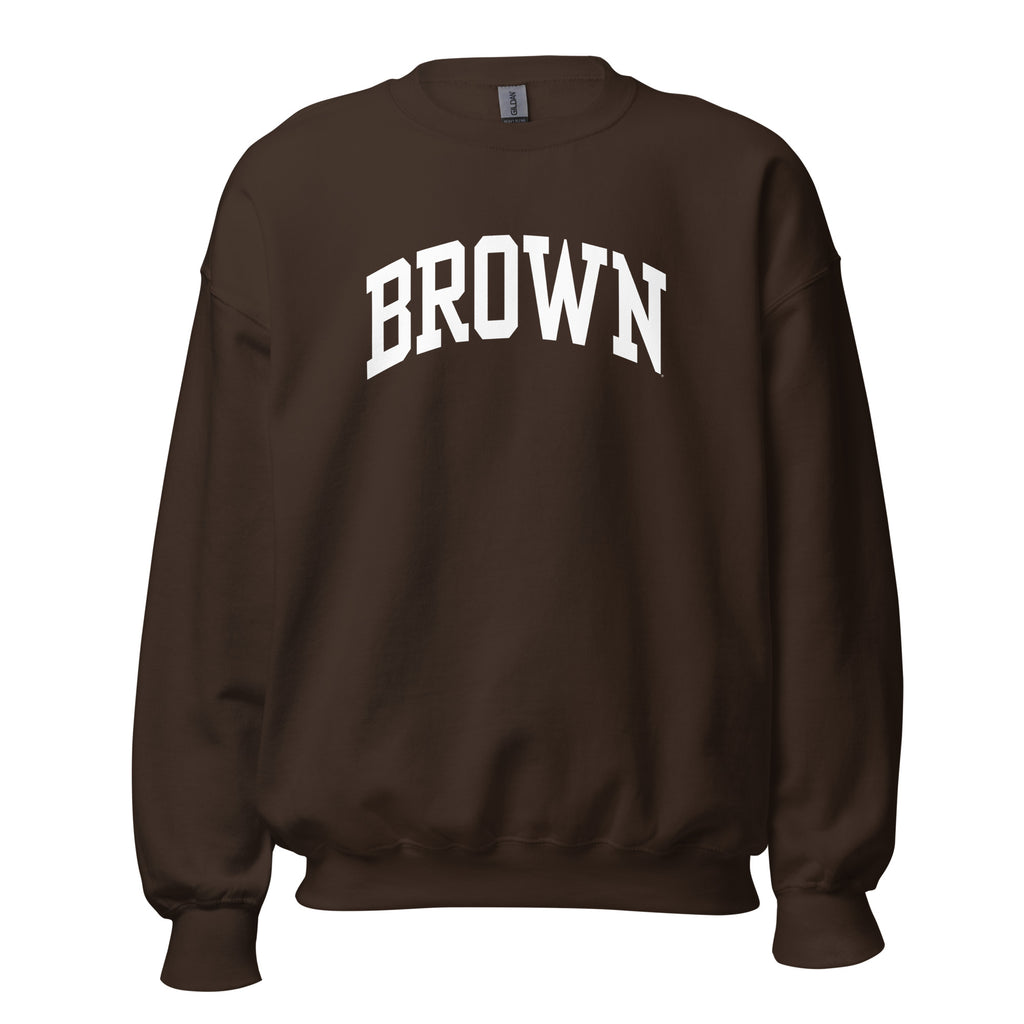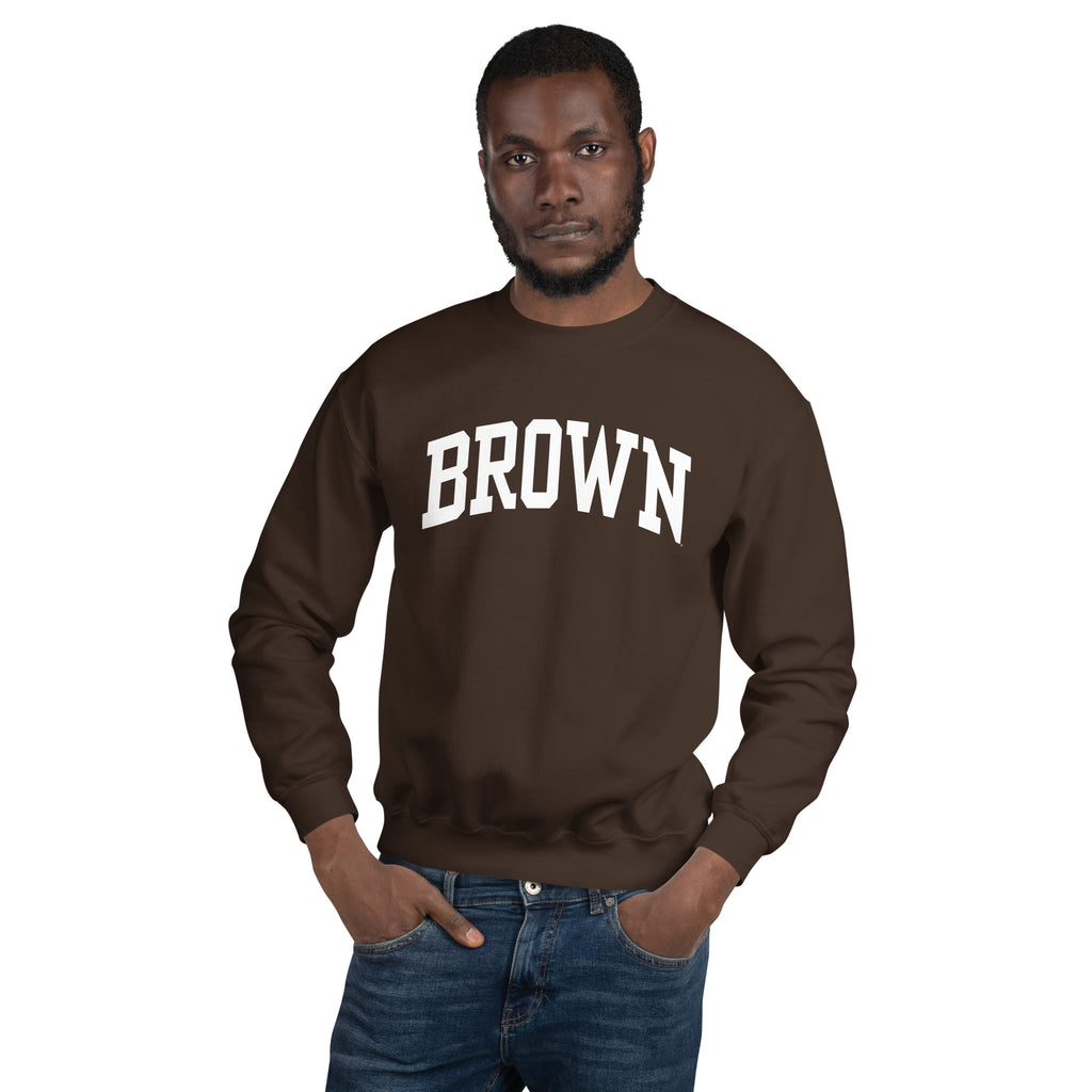 Brown Essential Sweatshirt. Features front graphic "Brown" in white.
