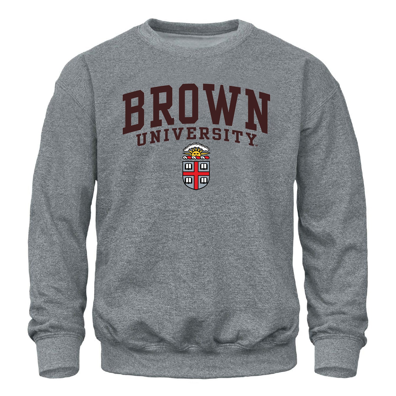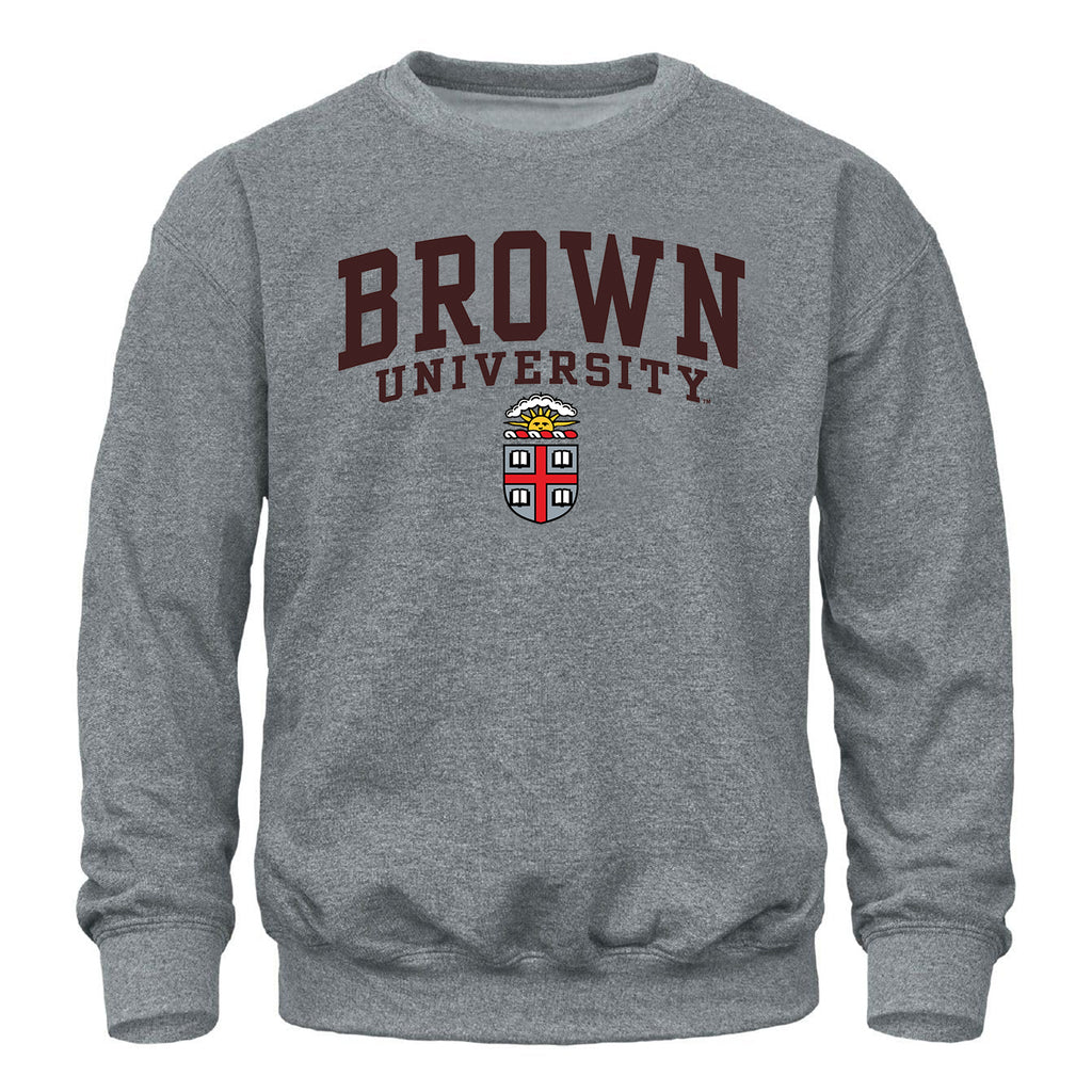 Brown Heritage Crew Sweatshirt features arched "Brown University" and Brown crest below.
