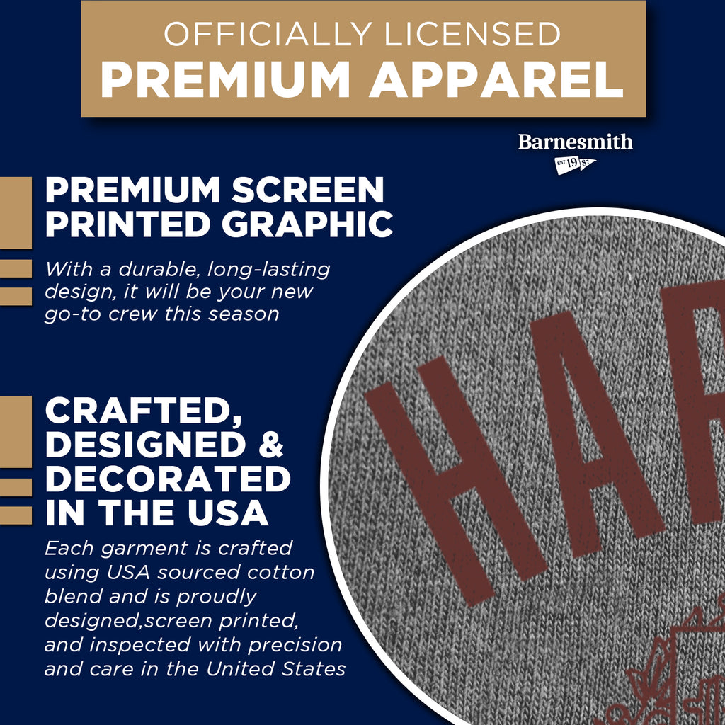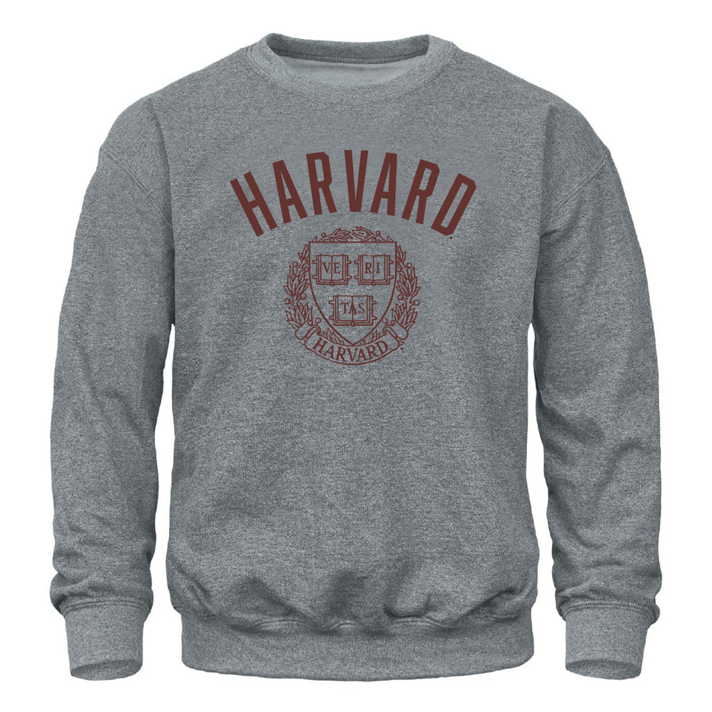 Harvard Heritage Crew Sweatshirt features arched "Harvard" and crest below.