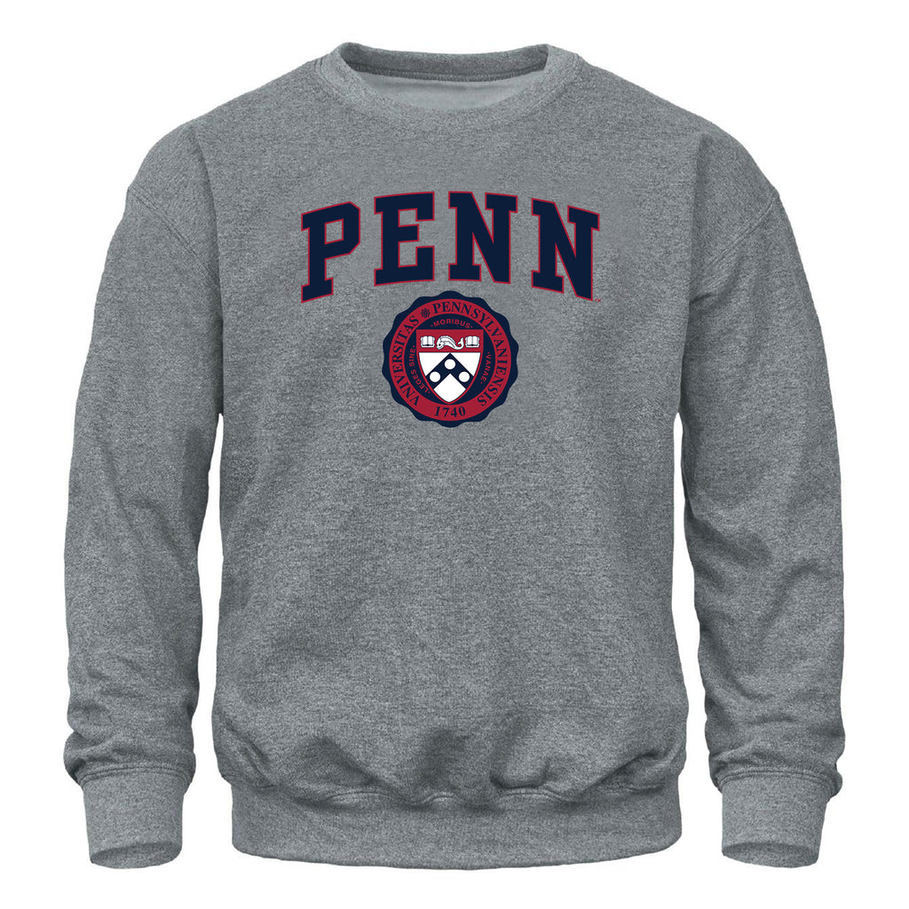 Penn Heritage Crew Sweatshirt features arched "Penn" and crest below.