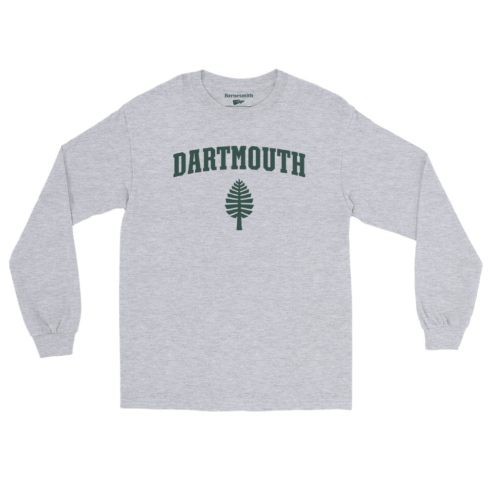 Dartmouth College Heritage long sleeve t-shirt features "Dartmouth" and Lone Pine logo on front.