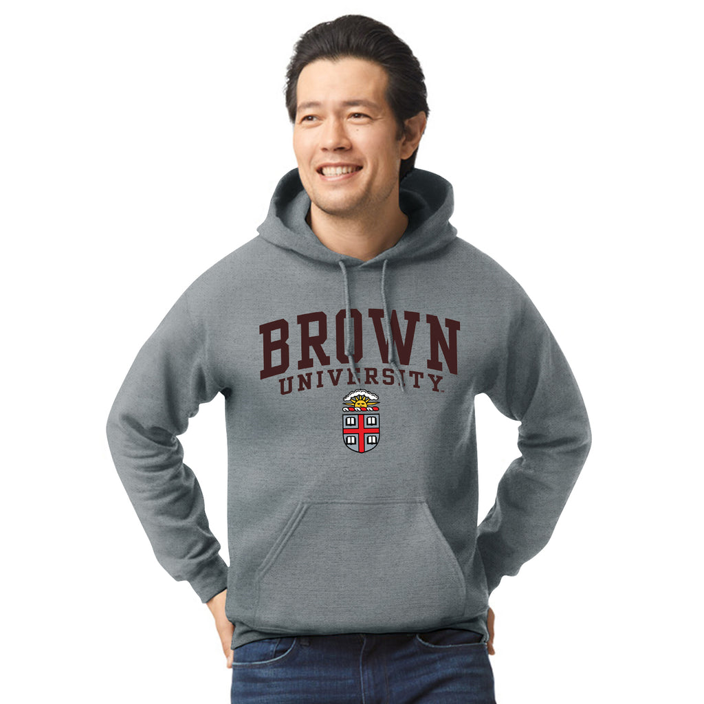 Brown Heritage Hooded Sweatshirt features arched "Brown University" and official Brown crest below.