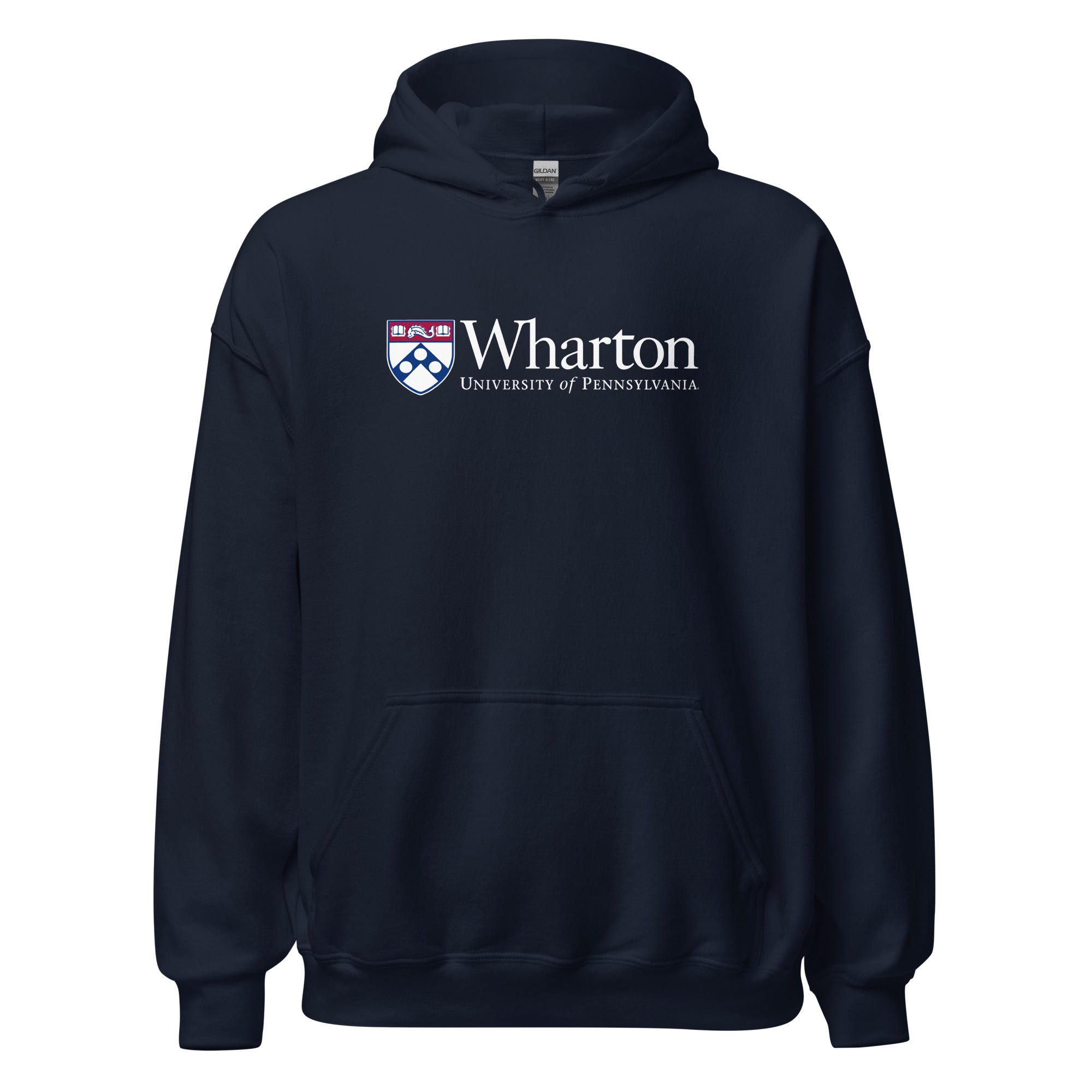 Founded in 1881 as the world's first collegiate school of business, Wharton continues to pioneer innovations in education across its pre-eminent undergraduate, MBA, executive MBA, doctoral, and executive education programs. Garment is a rugged 9.7 oz., feature draw strings on hood and pouch pocket in front, 90/10% cotton/polyester. Color: Navy.